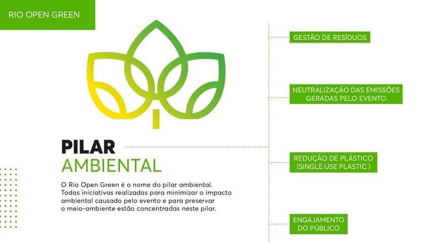 O Rio Open Green é o pilar ambiental, lançado em 2020 o programa tem como objetivo minimizar o impacto ambiental do torneio. Atuamos em 2 frentes: a redução e neutralização das emissões geradas, bem como uma gestão de resíduos eficiente e sustentável.